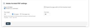 - Under Timesheet Report Layout, check the Adobe Acrobat PDF Settings. Here are the key adjustments you can make: