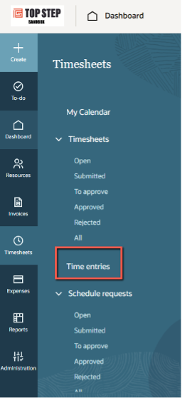 If you have the switch enabled in your environment AND the role permission “View the time entry tab” (both are required), your view will now include a link to the time entries list view: