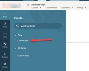 The first step is to create a field where you can store the link. Click the Create button in the top left corner and search for Custom Fields.