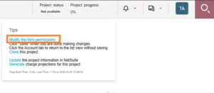 - Navigate to an existing record Project’s Properties page or on a new Project form: Project > Create > [Projects] New …