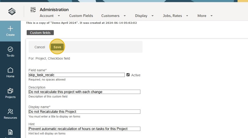 Create A Custom Field to Enable Skipping Project Recalculation