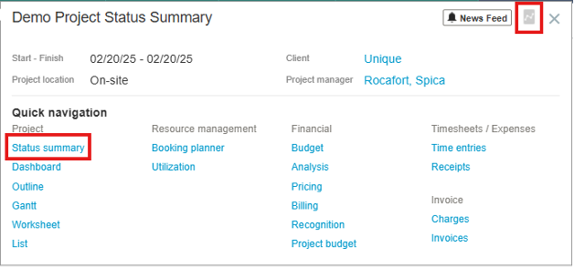 Most companies use the Project Status Summary and access it through QuickView for quick and convenient project insights.