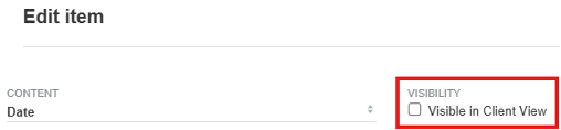 A specific portlet can be hidden from the client’s view. Similarly, you can select which items inside the portlet are visible to the client.