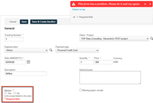 Require Billable “Yes” or “No” Selection on Expense Receipts in SuiteProjects Pro