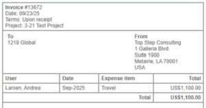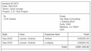 There are a multitude of use cases where combining expense charges and applying custom grouping can streamline the display of these charges on an invoice. As a simple example, you can group expense item charges for hotel and airfare into a custom expense item group displayed as one line on the invoice under ‘Travel’ vs having one line for hotel and a separate one for airfare.