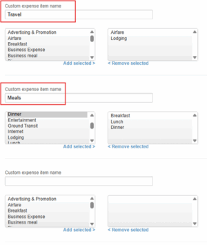 6. From here you will enter the custom group name you would like to apply and select the expense item categories to be grouped under this custom group.