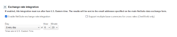 The Solution: Schedule your Exchange Rate Integration to run 20 minutes after the NetSuite exchange rates are updated. This buffer ensures SuiteProjects Pro always captures the most current rates.
