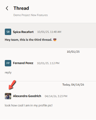 4. In Project Discussions, contributor avatars now show the user’s profile picture (if set under the user’s personal settings) or the user’s initials. Previously, the avatar displayed the user’s initials only