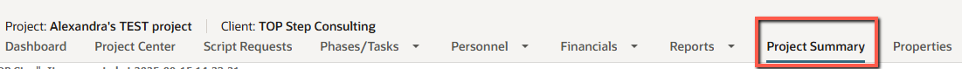 Once enabled, users with the appropriate Project Summary role permissions can navigate to the Project Summary tab at the top of any project.