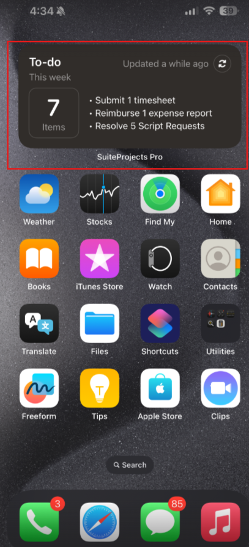 SPP Mobile 5.3 includes a couple of new features, but our favorite is the To-Do Widget. With this widget added to your home screen, you can easily view an up-to-date list of any SuiteProjects Pro items that require your action without even opening the app. Simply tap the widget to jump straight to your to-do list within SPP.